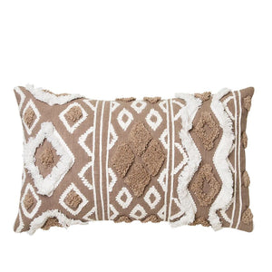Full of fun and texture, the Amarion Cushion is sure to be the centre of attention wherever it is placed! This tribal styled piece features a tufted geometric zigzag and triangular design with delicate stitching and fringe detailing across the cushion.